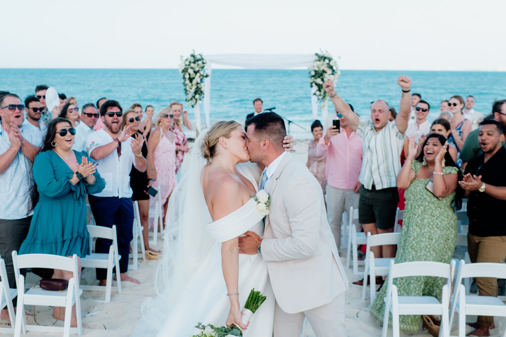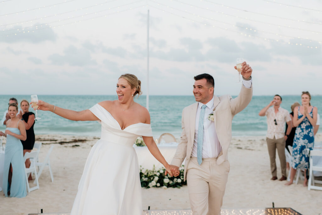 When the big day finally arrived at Secrets Playa Mujeres, everything came together beautifully. The ceremony embraced the natural beauty of the destination, allowing the surroundings of Mexico’s coastline to set the tone for the celebration. They opted for a quick ceremony on the beach, and headed straight into champagne cheers, mariachi music, and a laidback cocktail hour.